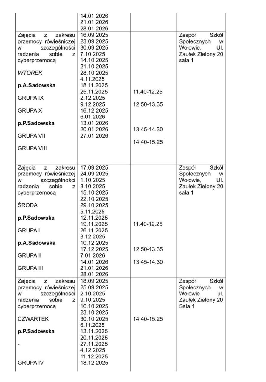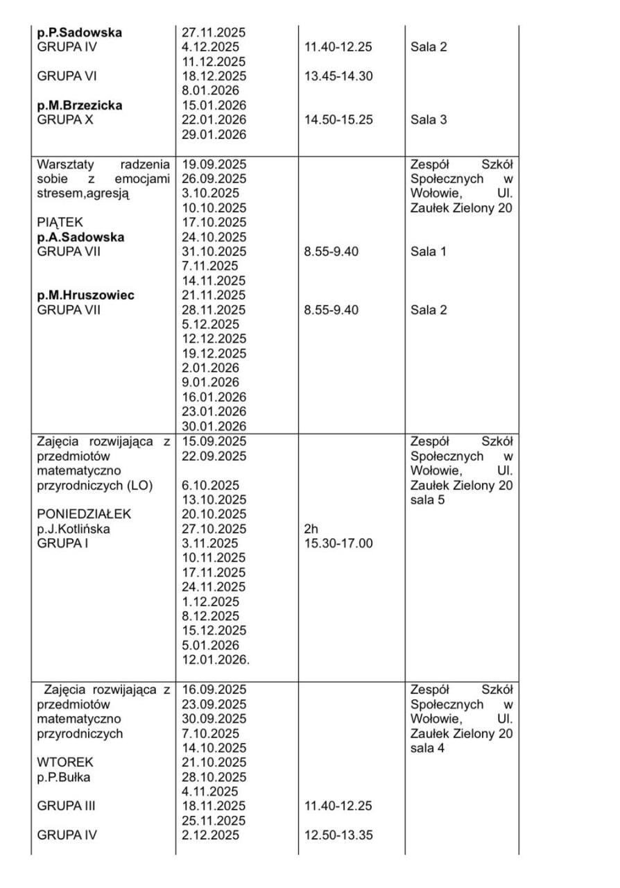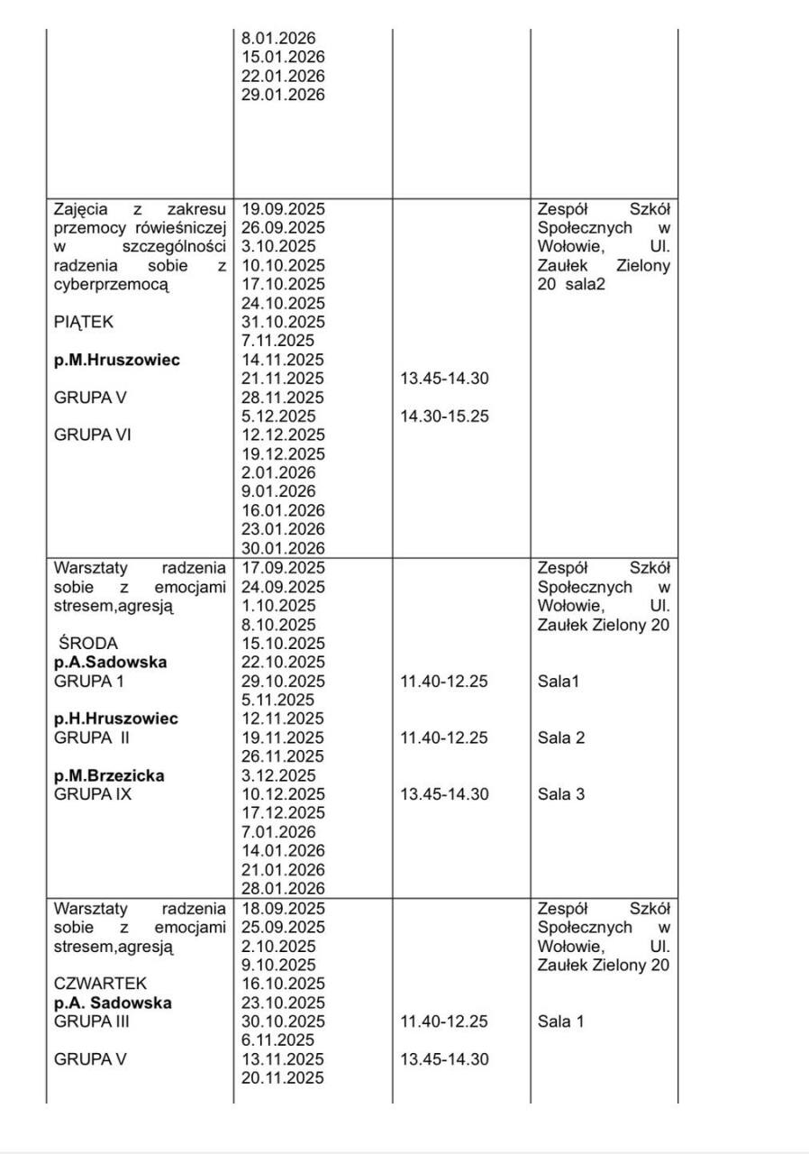 Rozpoczynamy realizację projektu „Aktywnie i Nowocześnie” w Zespole Szkół Społecznych w Wołowie w roku szkolnym 2025/2026 Już od najbliższego poniedziałku ruszamy z zajęciami, które pozwolą naszym uczniom rozwijać pasje, zdobywać nowe umiejętności i uczyć się w ciekawy, nowoczesny sposób. Poniżej przedstawiamy harmonogram zajęć na pierwszy semestr #FunduszeEuropejskie