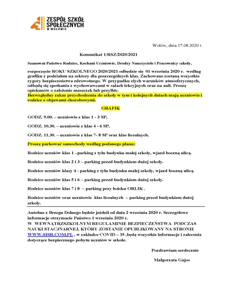 autobus z Brzegu Dolnego będzie dowoził/odwoził uczniów według dotychczasowego rozkładu jazdy,